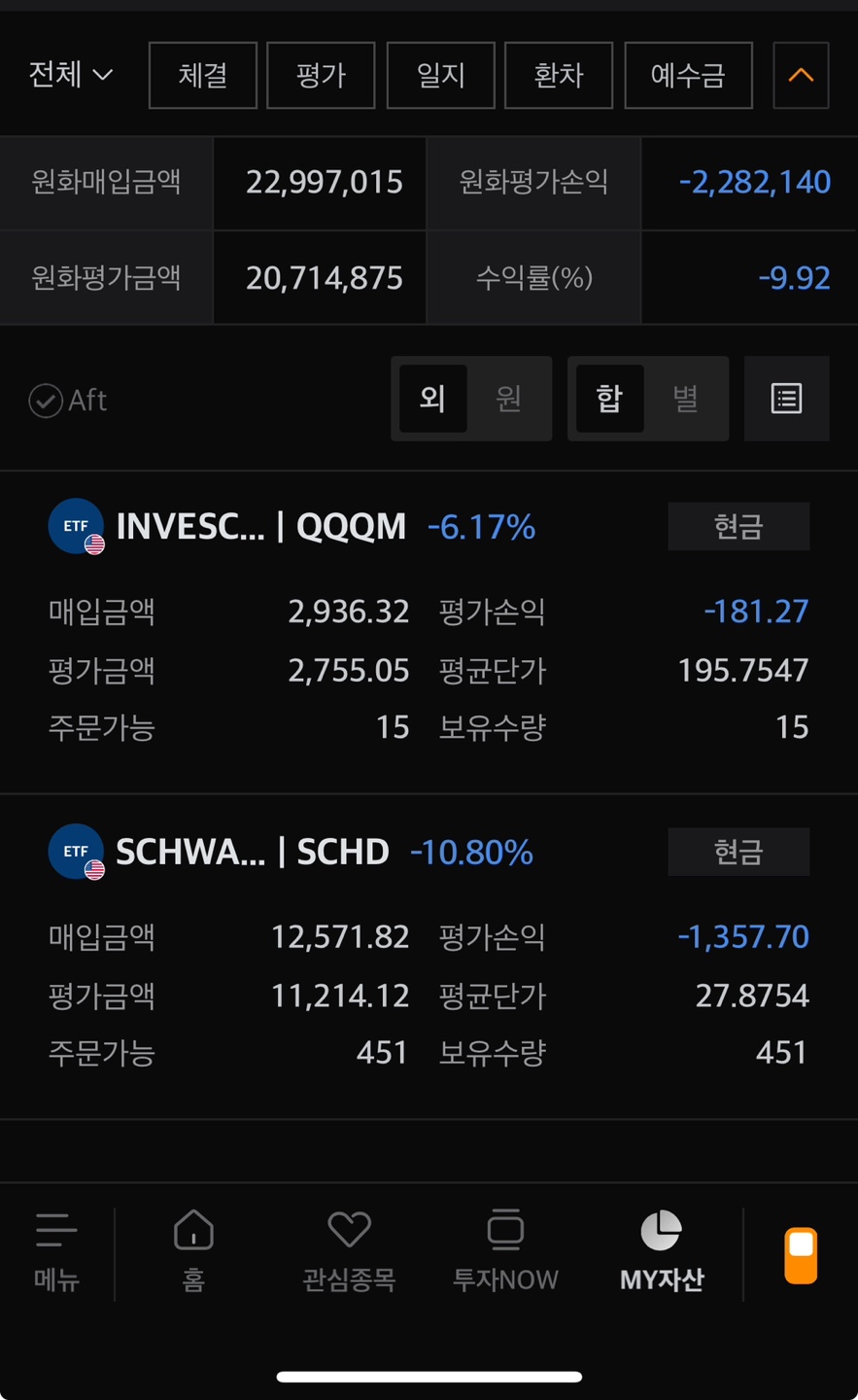 | SCHD | 25주 | 451주 | $27.8754 |